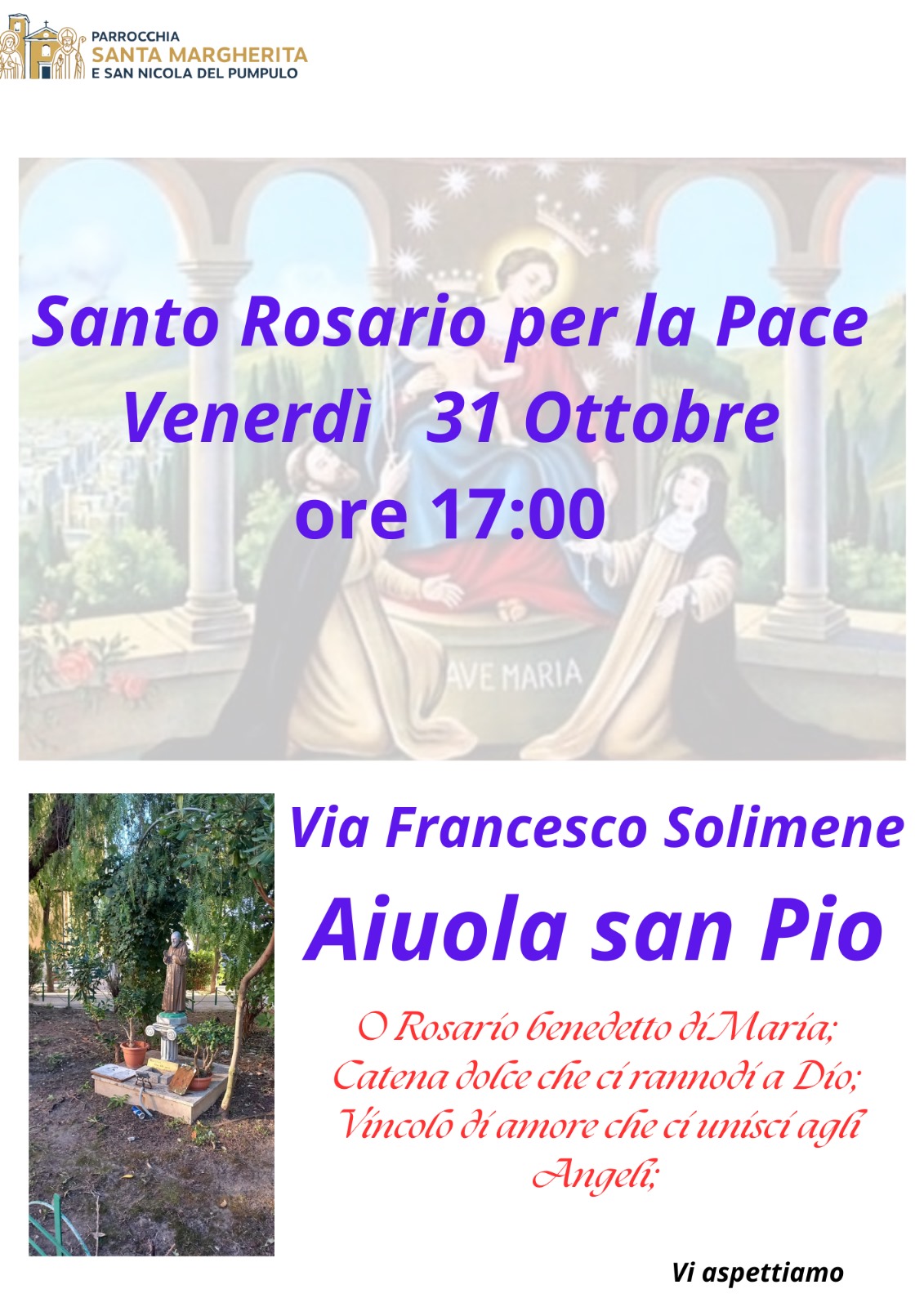 Prenotazioni da domani martedì 28 ottobre in segreteria parrocchiale.Al momento della prenotazione: